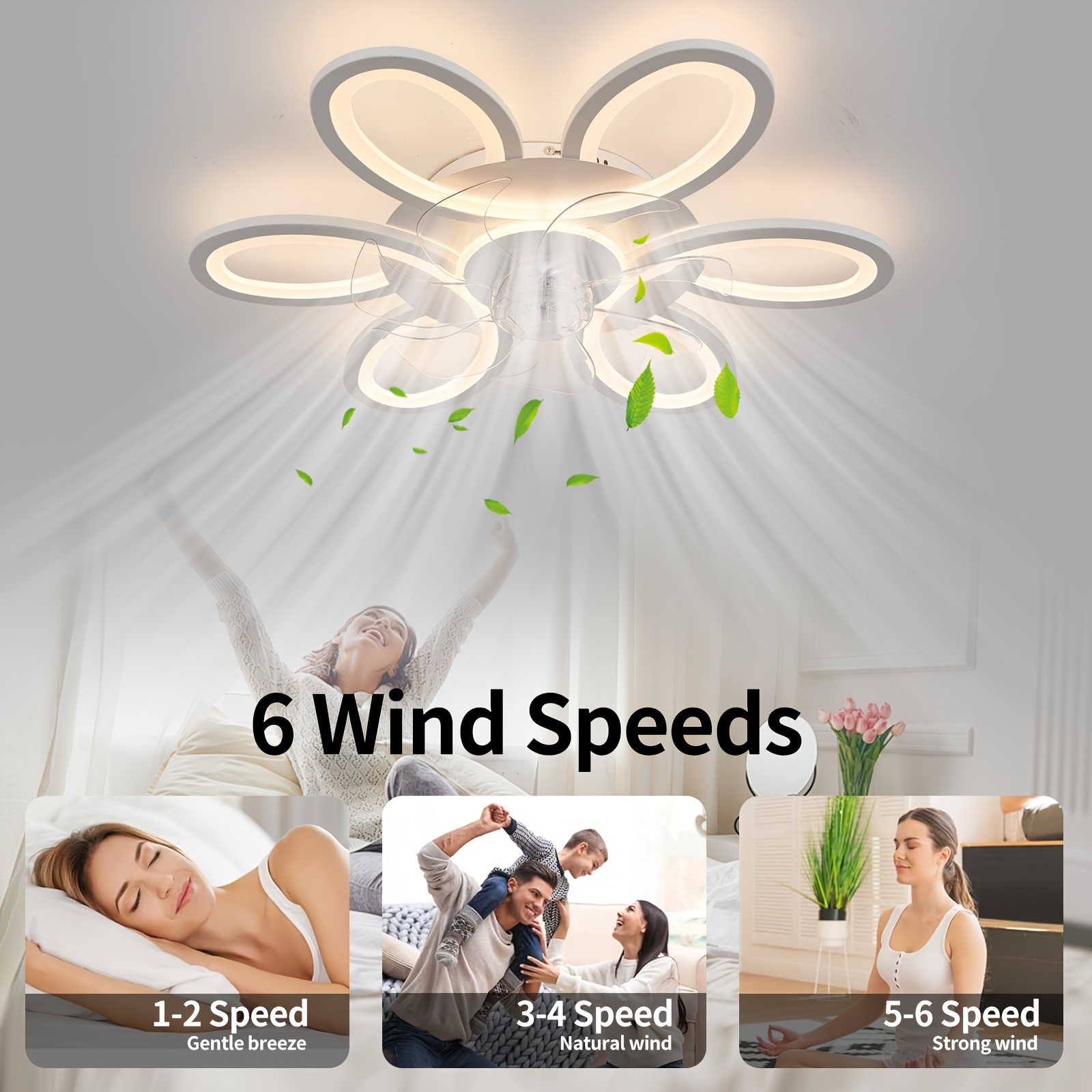 1pc, Remote Control LED Ceiling Fan with Light, Flower Shaped Ceiling Fan Light, 3 Light Colors, Dimmable Modern Low Profile Recessed Ceiling Fan Suitable for Kitchen, Bedroom, Commercial Lighting Suitable for Living Room, Dining Room, Coffee Shop, Shopping Mall, Very Suitable for Summer