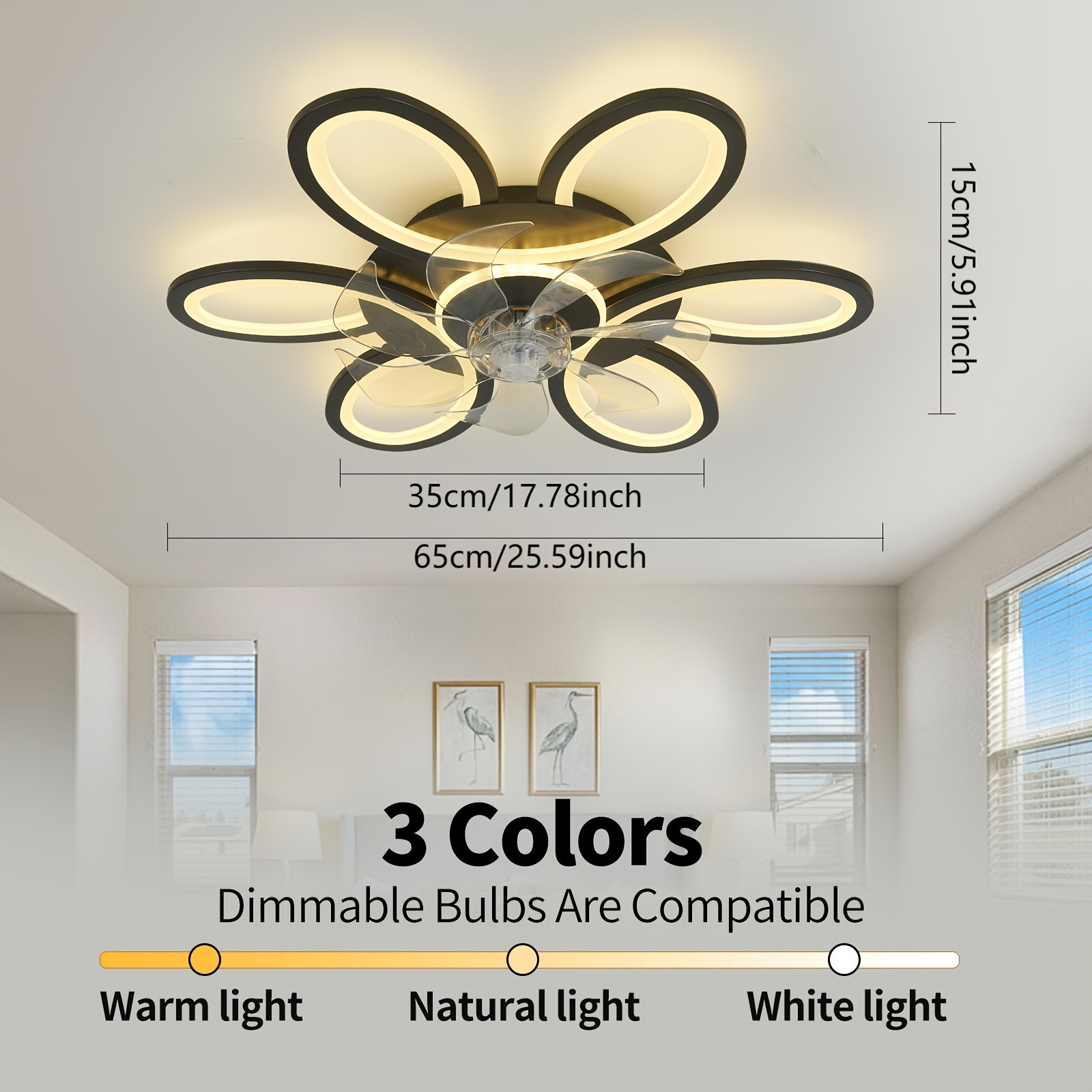 1pc, Remote Control LED Ceiling Fan with Light, Flower Shaped Ceiling Fan Light, 3 Light Colors, Dimmable Modern Low Profile Recessed Ceiling Fan Suitable for Kitchen, Bedroom, Commercial Lighting Suitable for Living Room, Dining Room, Coffee Shop, Shopping Mall, Very Suitable for Summer